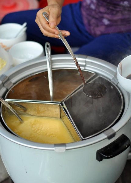 | Chè nóng ăn với xôi. |