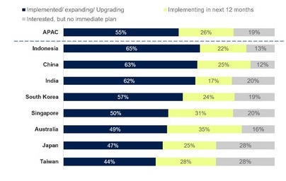 Tuy nhiên, cuộc khảo sát cho thấy khoảng cách sẽ được thu hẹp trong năm tới: tỷ lệ người trả lời cao hơn ở các nền kinh tế phát triển đã cho biết các kế hoạch triển khai công nghệ AI trong 12 tháng tới. Các kế hoạch sẽ triển khai công nghệ AI cao nhất ở Úc (35%), tiếp theo là Singapore (31%) và Đài Loan (28%).