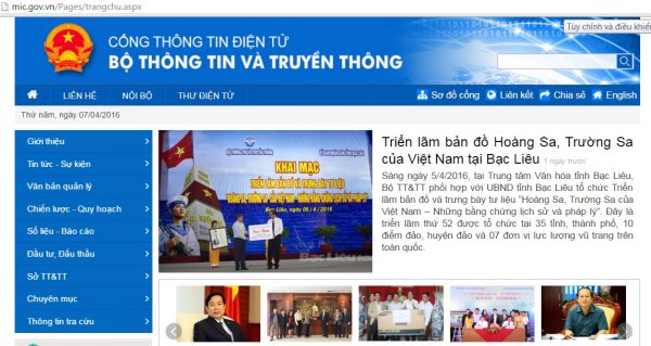 | Giao diện Cổng thông tin điện tử của Bộ TT&TT |