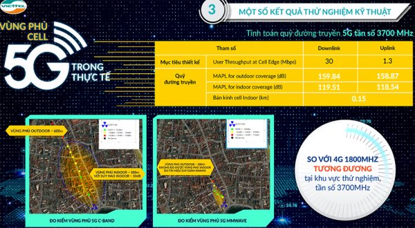 Viettel cho biết, tốc độ kết nối trong các bài thử nghiệm dao động từ 600 - 700Mbps, tương đương với tốc độ cung cấp cho khách hàng mạng 5G của nhà mạng Verizon (Mỹ).