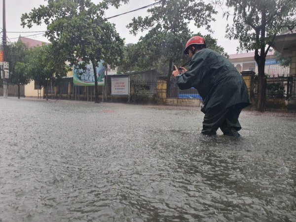 | Sáng ngày 20/10, nhiều phường ở TP Hà Tĩnh vẫn ngập sâu trong nước, phóng viên Phạm Đức báo Thanh Niên vẫn miệt mài trên những cung đường, trong nhiều ngày thiếu điện, thiếu lương thực nhưng công việc của anh chỉ kết thúc lúc 12h đêm. |