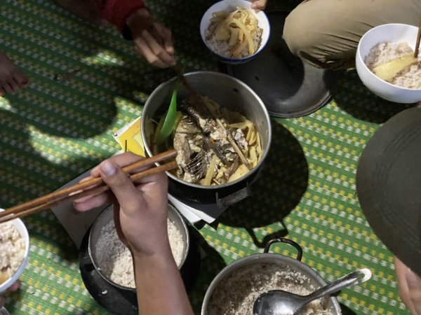 | Hai ngày tác nghiệp ở Cửa Trời, bản Cợp, xã Hướng Phùng (Hướng Hóa, Quảng Trị). Nhóm phóng viên cùng ăn cùng ở với người dân trong bản. |