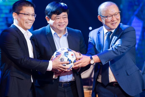 | Quả bóng có chữ ký HLV Park Hang Seo và các thành viên cầu thủ đội tuyển Olympic Việt Nam sau khi thi đấu thành công tại Đại hội thể thao châu Á ASIAD 2018 với giá 200 triệu đồng thuộc về đại diện Công ty TNHH đầu tư địa ốc thành phố Cityland. Ảnh: Hà Phương |