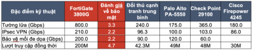 Sức mạnh của dòng sản phẩm FortiGate 3800G mới và Dịch vụ Bảo mật Hỗ trợ AI của FortiGuard được thể hiện trong bảng Xếp hạng bên dưới, so sánh các tường lửa hàng đầu trên thị trường với các chỉ số hiệu suất mục tiêu của FortiGate 3800G.