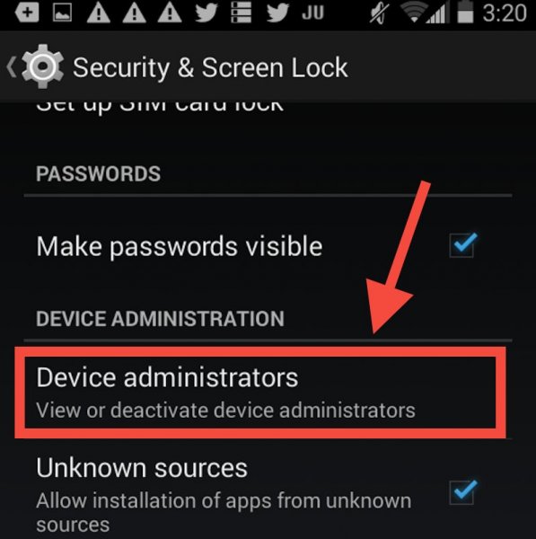 Nếu bạn không chạy phiên bản Android mới nhất, bạn có thể đầu tiên phải vào phần gọi là "Device Administrators" (Quản trị thiết bị) hoặc cái gì đó tương tự: