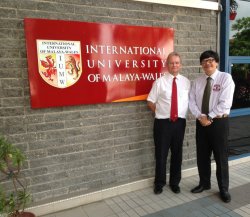 | GS.TS Brian Clarke - Hiệu phó IUMW (bên trái) cùng ông Trần Hữu Phúc Tiến - GĐ Công ty Hợp Điểm tại Học xá IUMW, Kuala Lumpur ngày 8/6/2014. (Ảnh: VNCP). |