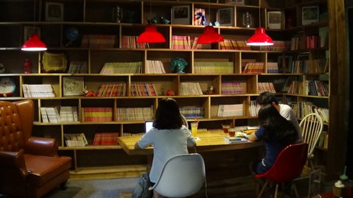 Sau cánh cửa khu tầng hai là không gian yên tĩnh khác hẳn với sự ồn ào bên ngoài. Khu bên phải được thiết kế chủ yếu bằng gỗ, tạo cho bạn cảm giác thích thú khi ngồi trên hàng ghế cao. Đi sâu vào là thư viện sách, với ánh sáng nhẹ. Bên trái là một sàn để ngồi đọc sách, nhâm nhi ly nước, thi thoảng trao đổi với bạn bè về một số vấn đề một cách nhỏ nhẹ.