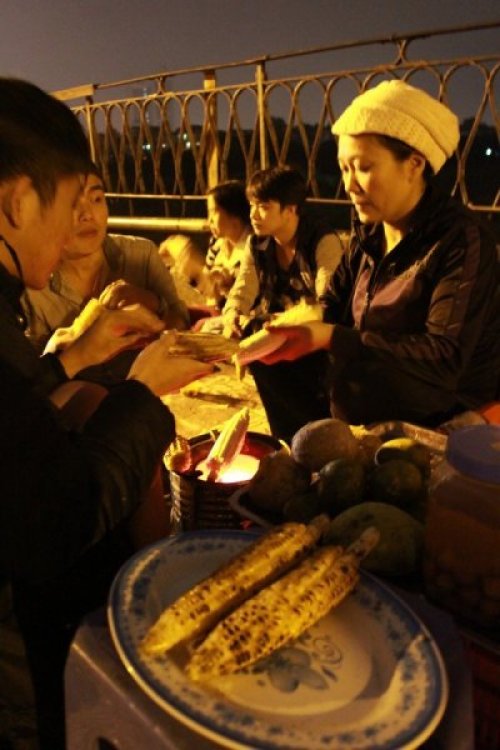Nhâm nhi ngô nướng bên than hồng: Khi trời rét, hầu như con phố nào cũng có các hàng ngô nướng thơm lừng. Bắp ngô nếp dẻo được nướng chín trên than hoa, hạt giòn bên ngoài mà dẻo bên trong. Nhiều hàng còn có ngô luộc và nước ngô ngọt ấm phục vụ khách hàng.
