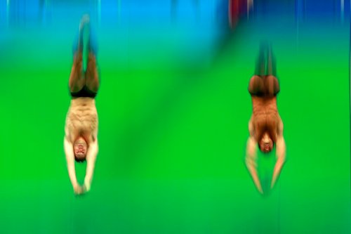 Sam Dorman và Mike Hixon, 2 VĐV người Mỹ biểu diễn ở nội dung nhảy cầu 3m nam. |