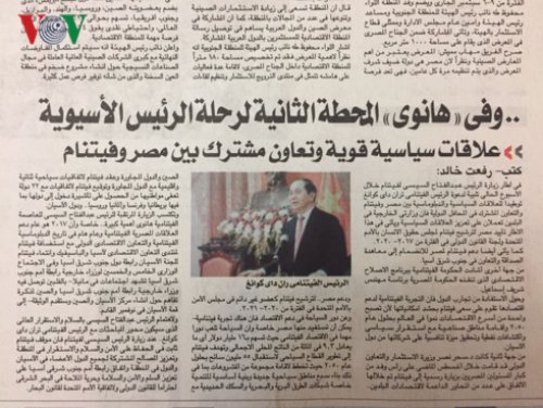 Trong những ngày qua, các tờ báo lớn chính thống của Ai Cập như Al Ahram, El Messa, AL Gomhuria, Youm7… và báo chí Trung Đông có nhiều thông tin, bài viết trước chuyến thăm Việt Nam của Tổng thống Abdel-Fattah El-Sisi. Không chỉ khẳng định tầm quan trọng của chuyến thăm, các bài viết đã đề cập quan hệ tốt đẹp giữa hai nước, những thành tựu phát triển kinh tế của Việt Nam cũng như cơ hội hợp tác giữa hai nước. Nhiều báo đã có bài viết sâu về kinh tế, xã hội, văn hóa Việt Nam.
